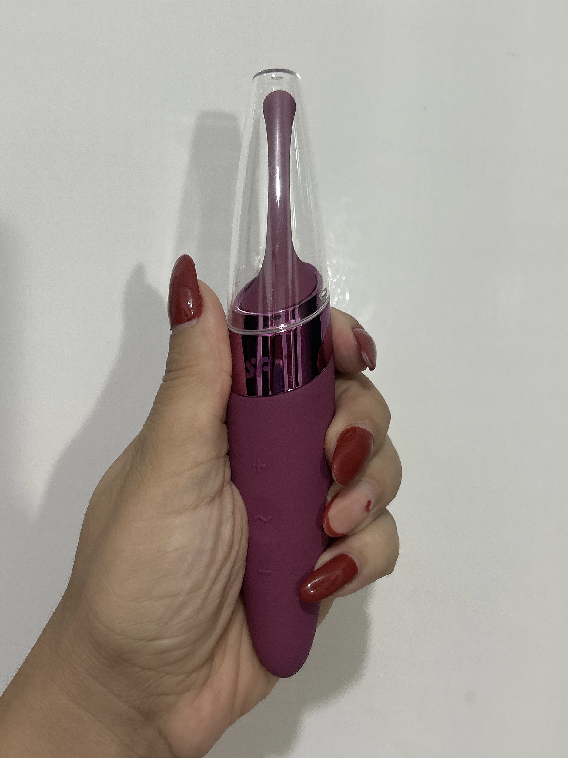 Vibrador Satisfyer Twirling Delight em Silicone antialérgico, estimulante clitoriano por meio de forte vibração. Impermeável a água. Super silencioso. Recarregável com cabo USB. Fácil limpeza. 40 vibrações e 15 anos garantia.